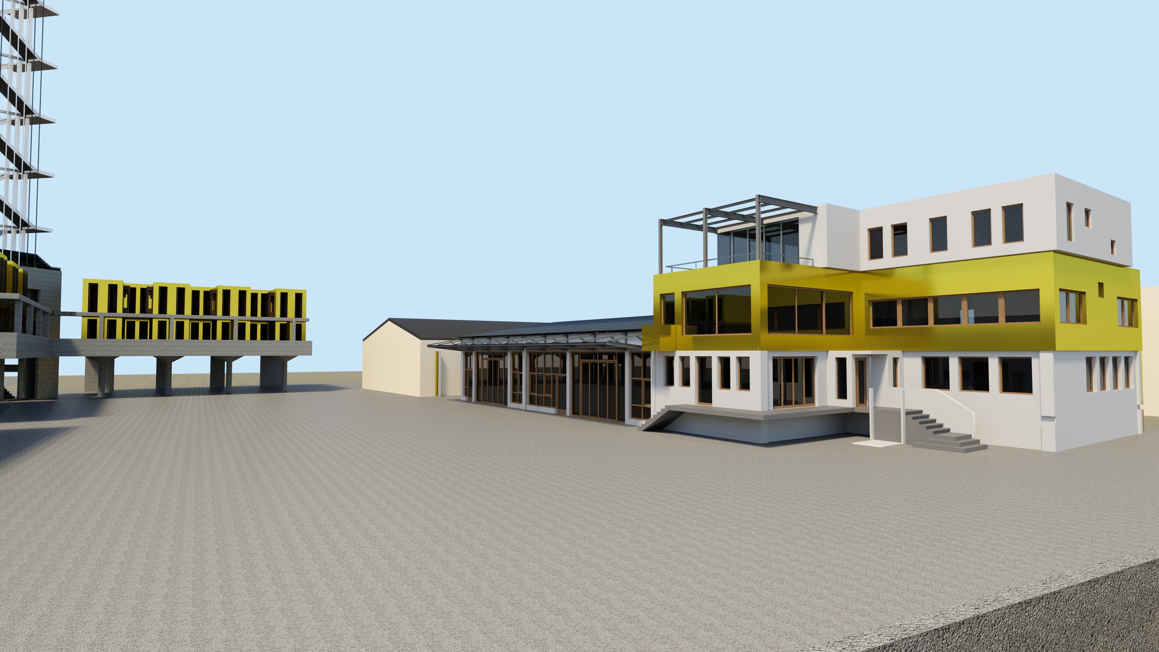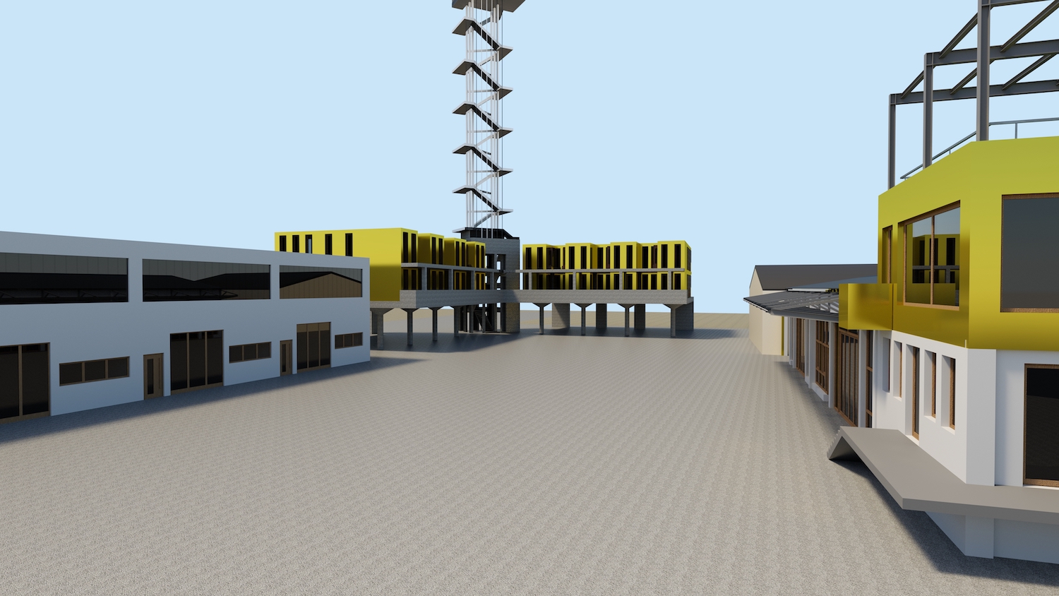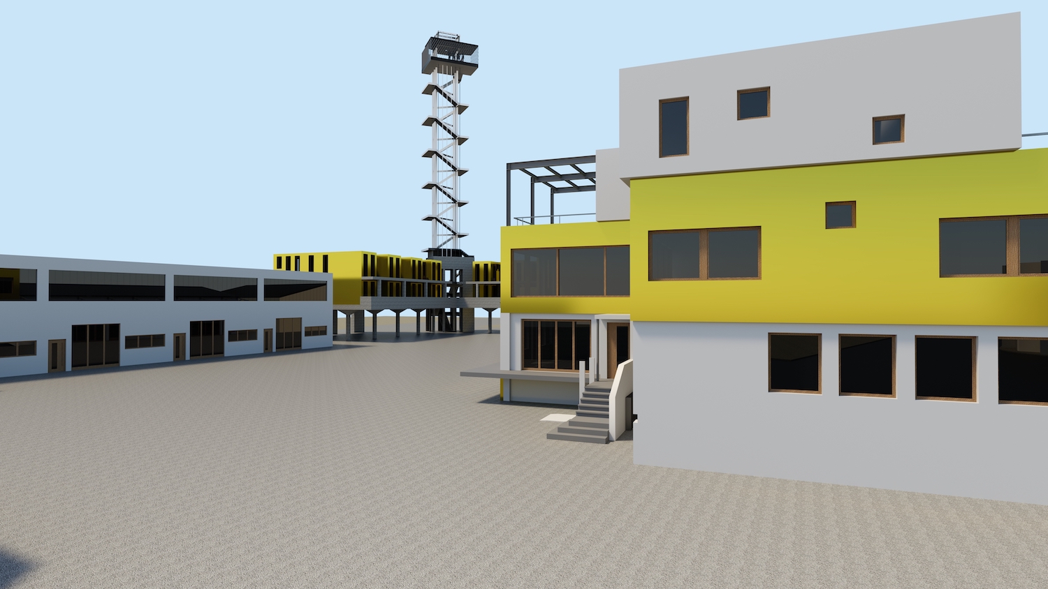 Für die Unterbringung der Gastkünstler sind aufgeständerte zweigeschossige Neubauten im Westen des Geländes mit Wohneinheiten von 28 m² bis 44 m² entworfen (Temporäres Wohnen). Verbunden werden die beiden Wohnbereiche durch die vertikale Erschließung, aus der sich ein Turm entwickelt. Der Turm bildet eine vertikale Ausstellungsfläche, die ein internationales Alleinstellungsmerkmal und Highlight darstellt. Besonders in der Lichtkunst können hier weltweit einzigartige Projekte realisiert werden.