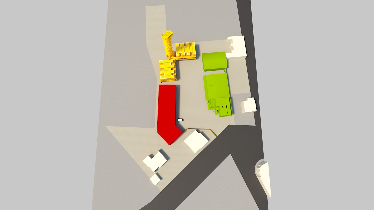 Eine neue Werkhalle für bis zu 12 Ateliers rundet die Hofbildung des zukünftigen Kreativ-Campus ab.